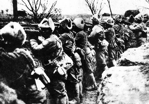 资料图:辽西义勇军老梯子队在阵地上抵抗日军。