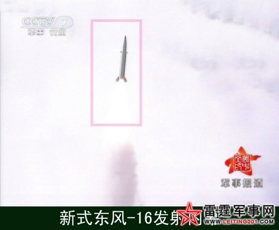 2011年4月10日星期日,中国国防部网站以及央视等单位边篇报道二炮军代表廖平先进事迹,文中暗示中国新式东风-16轨迹巧妙能够抗高强度的电子干扰弹头像长了眼睛一样直扑目标!央视也给了一个东风-16发射的远镜头,已知东风-16是东风-11的基础上大改而来,由8轮大卡改为十轮大卡,导弹提高了重量、精度和突防能力,具备变轨能力可以打击航母等移动目标。