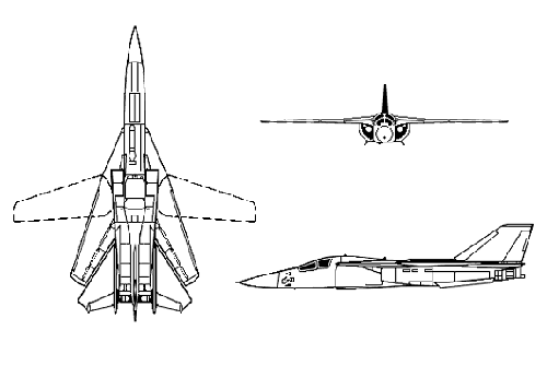 该机翼展19.2米(后掠角16度)、9.74米(后掠角72.5度),机长22.40米,机高5.22米,机翼面积57平方米(后掠角72.5度),机翼展弦比1.34-7.56。空重21,700公斤,正常起飞重量36,800公斤(内部满油,无外挂),最大起飞重量41,500公斤。最大平飞速度(高度11,000米以上)M2.2/2340公里/小时、(海平面)M1.2/1470公里/小时,实用升限15,500米,作战半径(低一低)500-1,000公里、(高-低-高)1,100-2,100公里,最大转场航程10,000公里,起飞滑跑距离900米,着陆滑跑距离900米。