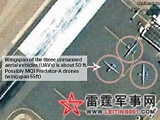 GoogleEarth卫星地图显示在巴基斯坦沙姆西空军基地停放的三架MQ-1“捕食者”无人机